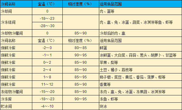 二、冰雄制冷保鲜冷库贮存标准: